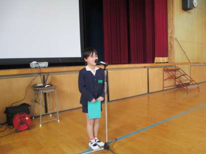 今回、学期を振り返っての作文を読んでくれたのは、2年生と5年生です。