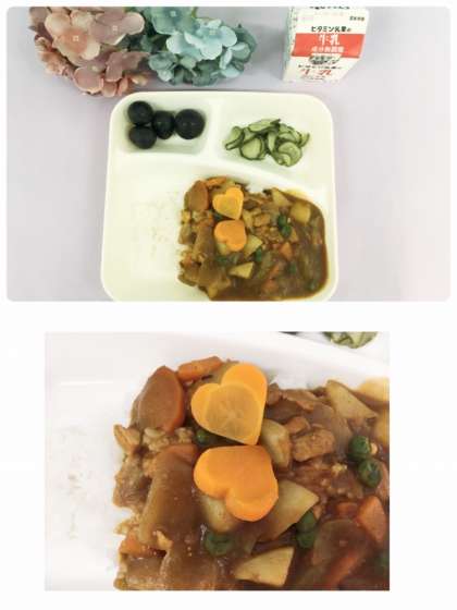 今日は、ハート型のラッキーにんじんが入っていました!当たったかな?