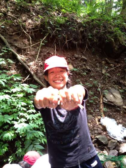 生きた魚をつかむなんてなかなかできない体験です。子どもたちはキャーキャー叫びながら楽しんでいるのでしょう。でも、大切な命です。命をいただくという経験もぜひ味わってほしいものです。