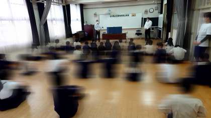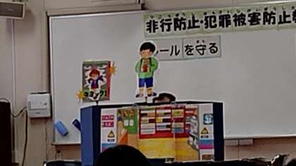 警察のOBの方がこられてテープサート等を用いてお話していただきました。