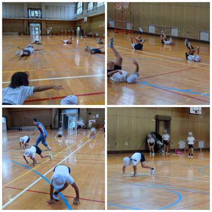 駆け足30秒をしたり、くまのポーズで走ったり、ゴキブリバタバタポーズ、そして飛行機のポーズで手足をピーンと反ります。