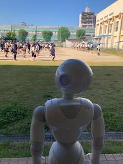みんなが朝会でラジオ体操をしているのを、廊下から見ていたよ。