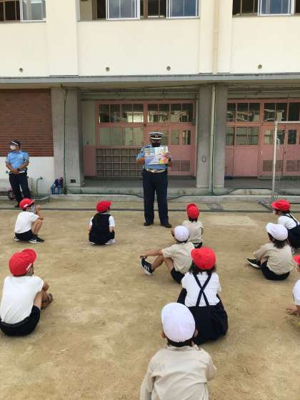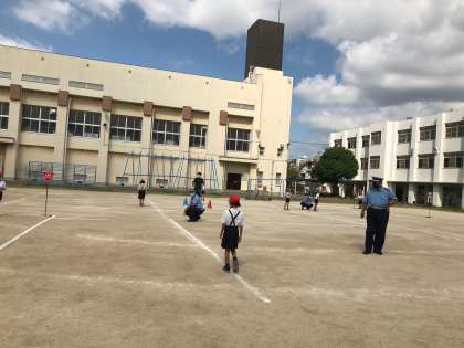3時間目に交通安全教室がありました。此花警察からおまわりさんが指導に来てくださいました。