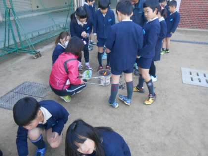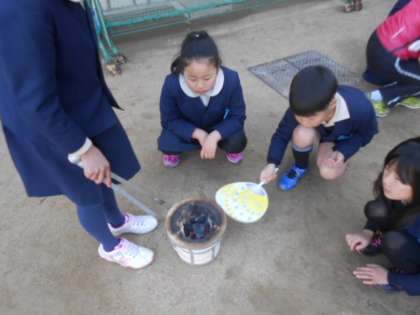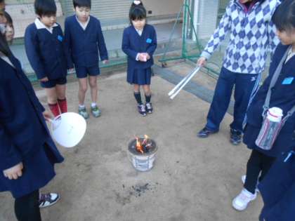 社会の授業で、実際に七輪を使ってお餅を焼きました!