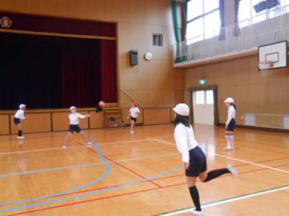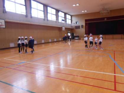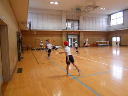 運動場が濡れているので、体育館でフラッグフットボールの練習です!