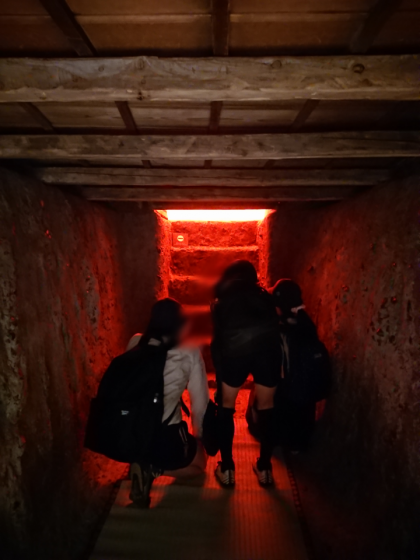 防空壕の体験をしたり、追悼の鐘を鳴らしたり、大阪の空襲の映画を見ました。