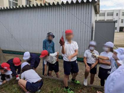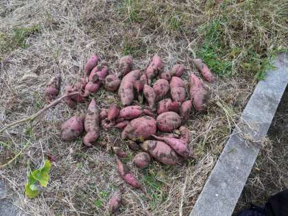 大きなお芋が収穫できました。収穫した後、長いお芋のつるで縄跳びをしました。