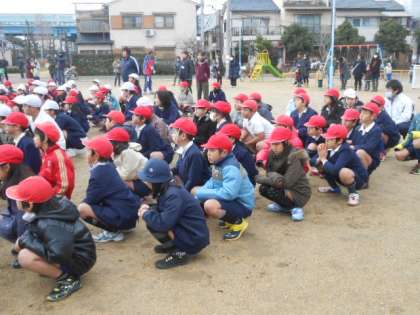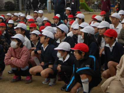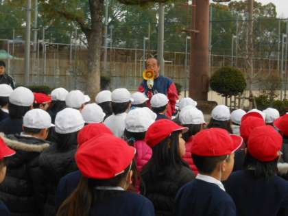 寒い中、子どもたちもドキドキしながら話を聞いている様子・・・