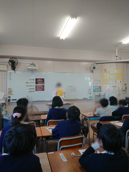 虫歯と歯周病について、とてもわかりやすくお話をしてくださって、子どもたちもすごく集中していました。