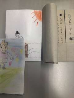 自分で主人公を考え、おはなしをつくりました。絵も描いてミニ絵本にしました。