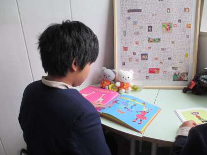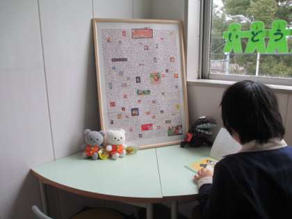 机といすもありますので、自習もできますよ。図書室同様、しろくまちゃんとこぐまちゃんがお出迎え。今回は、ティラポンも登場しました♪