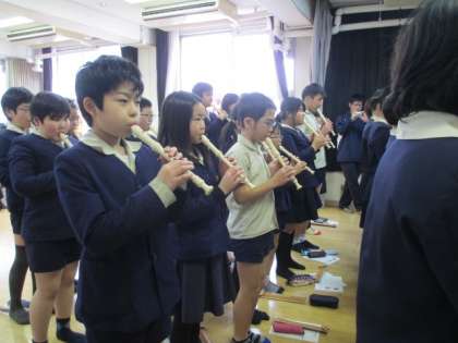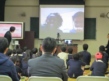 そして6年生からは、日本の祭りや、食べ物、服装を伝え、「ふるさと」をリコーダーで演奏しました。時差7時間、遠く離れた国とリアルタイムで会話する様子をご覧ください。