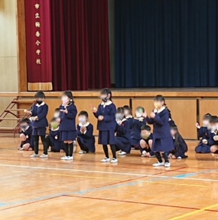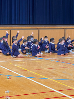けん玉やお手玉を発表しました。そして、国語の「スイミー」をみんなで声をそろえて音読しました。最後は感想の発表でした。「ドキドキした。」「見にきてくれてうれしかった」などの意見を発表していました。