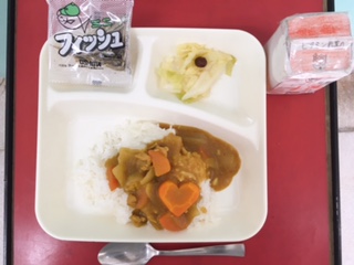 給食を食べ終わった後、何人かの子が、「先生、カレーにハート型のにんじんはいってたよ。」と笑顔でおしえてくれました!ラッキーにんじんおめでとう!