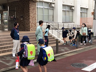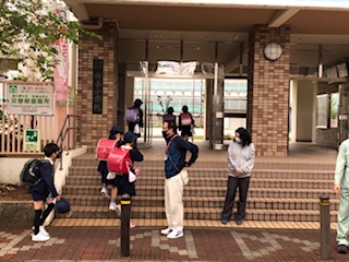 4月14日(水)、曇り空の朝です。子どもたちは、元気に登校してきました。皆、しっかり挨拶をしてくれます。