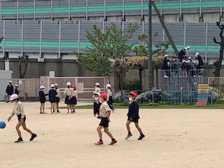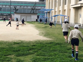 昼休みの時間から運動場の赤旗(運動場使用禁止の印)が取れたので、たくさんの子どもたちが遊んでいました。元気いっぱいです。
