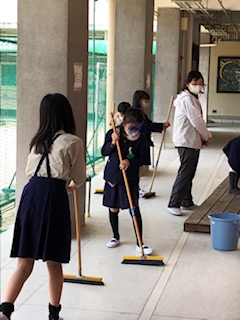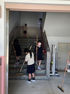 お昼休みの後は清掃活動の時間です。みんなで分担して学校中をきれいにしましょう。
