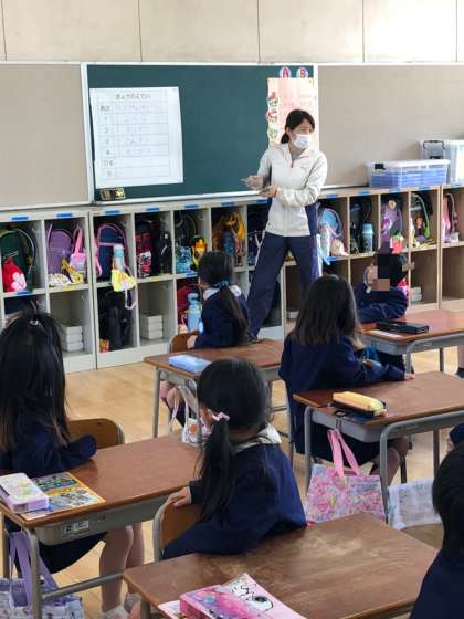 上段は1年生の学級活動。学級の係を決めていました。よてい係さんのしごとの説明を聴いていました。