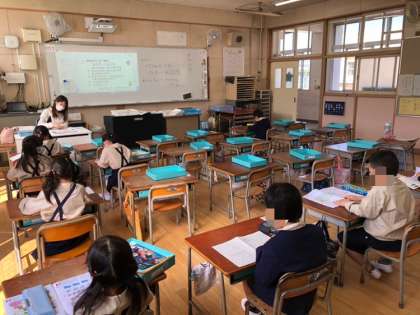 おはようございます。4月26日(月)、緊急事態宣言下での学習活動初日の朝です。居場所確保時間帯の様子です。登校している子たちは、めいめいがプリントをやったり、ドリルをやったり課題に取り組んでいます。