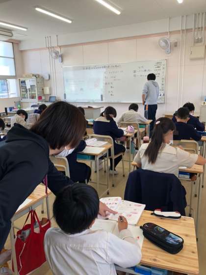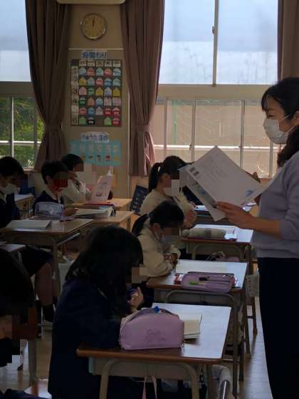 上段は、4年生の国語。下段は、5年生の算数です。多くの時間、教室には複数の先生が入ってのティームティーチングをしています。