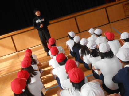 5・6年生に、エウ゛ェッサから、バスケットボールを教えに来ていただきました。