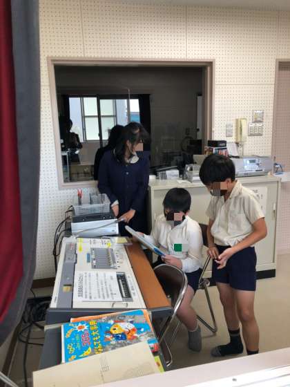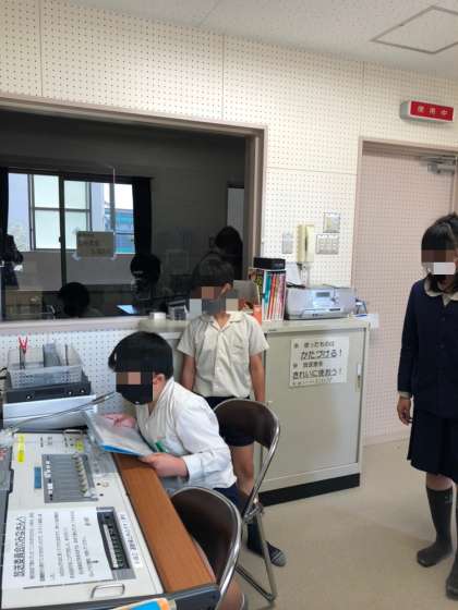 給食時には、毎日校内放送が流れます。落ち着いた雰囲気で給食が食べられるよう、放送委員会の子どもたちが選曲した曲をかけてくれます。とてもいい雰囲気です。