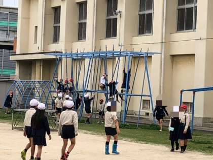 登校してきたら、さっそく、たくさんの子が運動場で遊んでいました。元気いっぱいですね。