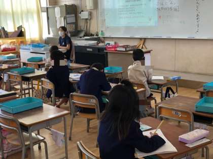 上段は1年生、めいめいでプリントやドリルなどの課題、終わった児童は読書などをしていました。