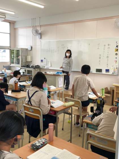 5年生の国語の様子です。文章の読み取りをしていました。指導者の質問に多くの児童が挙手し、あてられた児童はしっかり答えていました。