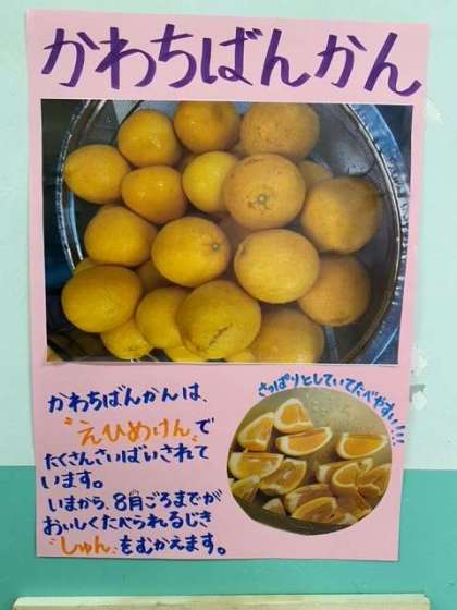 今日の給食に「かわちばんかん」が出ました。とてもさわやかでおいしい柑橘系の果物です。