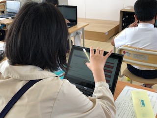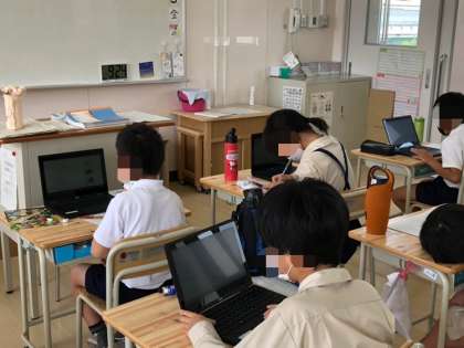 5年生の様子です。タブレット端末を使って調べ学習をしていました。
