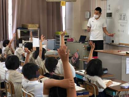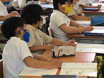 3年生の算数の様子です。割り算の学習です。今日の「めあて」をしっかりつかんで学習しています。