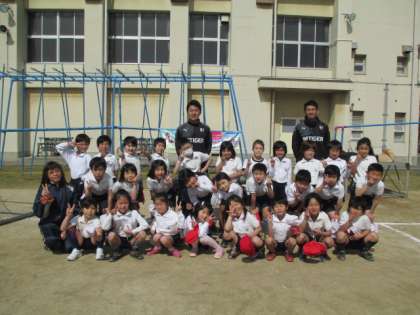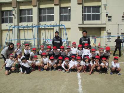 2時間しっかりサッカーの練習をしたあと、みんなで記念撮影!
