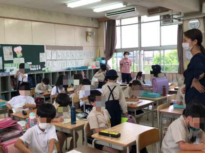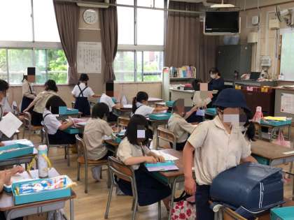 登校したら、1日の準備をした後、めいめいで過ごします。今日は運動場で遊べないのでプリントをしたり、読書をしたりしている子が多いです。