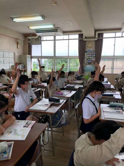 4年生の社会科の学習です。日本地図を見ながら都道府県の名前などを学習していました。