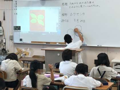3年生の理科です。ほうせんかの観察日誌を書いていました。