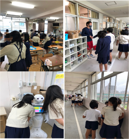 5・6年生の休み時間の様子です。テストの合間のひと時、友だちや先生と談笑したり、ペッパーさんと話をしたりしてリラックスしていました。