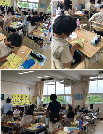 5年生の家庭科です。裁縫の学習で、簡単な文字を縫っていました。少したどたどしい子もいますが、皆、一所懸命でした。