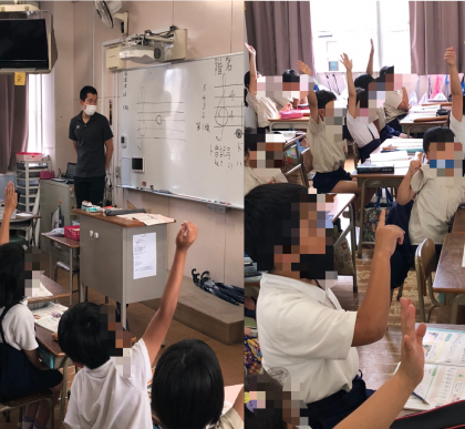 3年生の音楽です。楽譜の記号の名前や階名クイズなどをしていました。歌唱やリコーダー演奏などは感染症対策をしながら短時間しかできないので工夫しています。