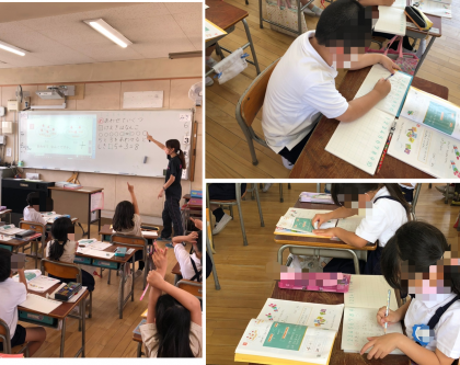 1年生の算数です。今日、初めてたし算の式を書きました。