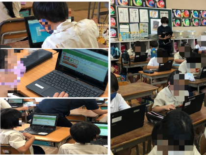 3年生の総合的な学習の時間です。タブレット端末を使って、スクールライフノートを活用できるよう使い方を学習しています。
