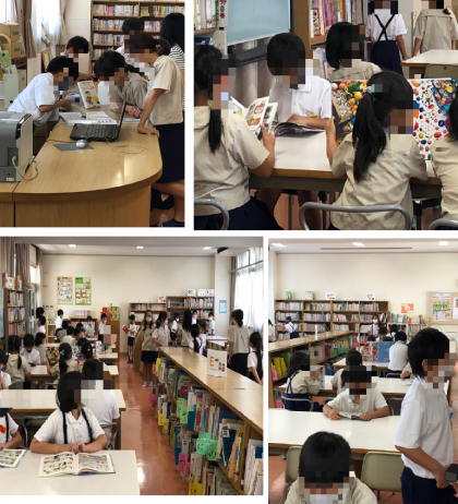 お昼休みに図書館開放がありました。図書委員会が運営します。図書支援員さんも手伝ってくれました。たくさん本を読みに来ていました。