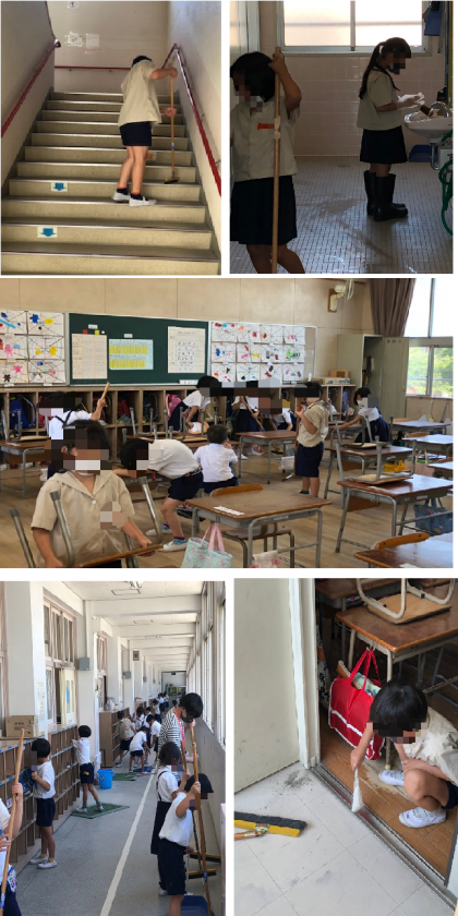 掃除の時間です。それぞれの担当をしっかり清掃しています。校舎がきれいなのは日ごろの活動に積み重ねです、誰もがしっかり活動しています。梅香小の子どもたちの素晴らしいところです。