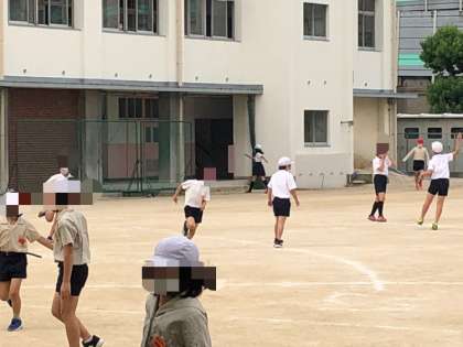 3日ぶりに朝から運動場が使えます。登校してきた子どもたちは、さっそく運動場で遊んでいました。