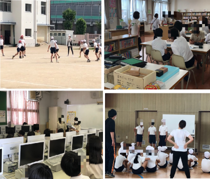 上部右がボードゲームクラブ、上部左がスポーツクラブ、下部右が室内スポーツクラブ、下部左がボードゲームクラブの様子です。