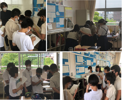 5年生の理科です。ヒトの体について調べたことを発表します。いくつかのブースに分かれて発表していました。声の大きさや話し方などにも注意してわかりやすい発表を心がけていました。