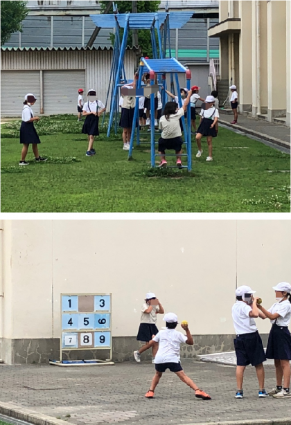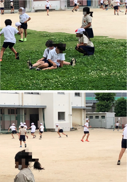 運動場でたくさんの子どもたちが遊んでいます。男女問わずとても仲がよさそうです。
