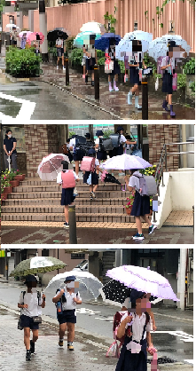 おはようございます。7月8日(木)、雨の朝で、傘をさしての登校になりました。蒸し暑い一日になりそうですが頑張りましょう。