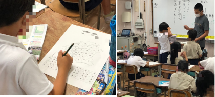 3年生の社会科です。大阪市にある区の学習をしていました。プリントに区の名前を書き込んでいってました。「此花区」以外の区名をどれだけ知っていたかな。