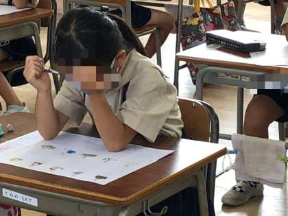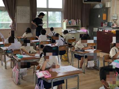 1年生の国語です。漢字のテストをしていました。皆、真剣な表情で頑張っていました。